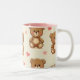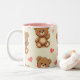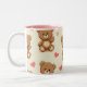 This is a mug with a cute teddy bear design. It's a mug filled with lovely baby pink.