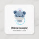 Business cards with a cute illustration of a blue bear wearing a nurses hat with a little heart on it. Also wearing a protective face mask and has a blue stethescope too.