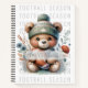 Personalised recipe notebook features a football theme with a feminine touch. Modern design has a cute bear holding a football and flowers. Perfect for football fans. A great way to organise football recipe and snack ideas. Personalise the text on the front and back. Add your desired name. Soft green, blue, grey, and orange colours. Use the template to create your own recipe notebook.