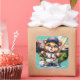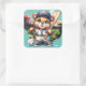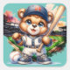Cute bear playing baseball square sticker