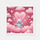 A delightful illustration of a fluffy white teddy bear sitting on pink clouds, holding heart-shaped balloons. The whimsical background is filled with soft pink clouds and floating hearts, creating a dreamy and romantic atmosphere. Ideal for Valentine’s Day, children’s party, or cute decorative designs and napkins. Great for gift ideas