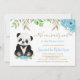 Cute adorable blue floral greenery eucalyptus, botanical foliage, watercolor sage green leaves, gold leaf, baby panda bear, we can bearly wait! It's a boy baby shower invitation. You can customise this elegant modern invitation with your own text.