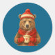 Cute Bear With Santa Hat Coffee Lover Funny Winter Classic Round Sticker