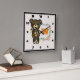 A clock with a monogram initial. Designed with a cute illustration of a cartoon brown bear holding a yellow daisy. Surrounded by a decorative floral wreath with flowers, leaves, sprigs and hearts. Autumn colour scheme.