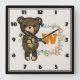 Cute Bear, Yellow Flower & Floral Wreath Monogram Square Wall Clock