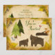 This adorable woodland animals first birthday invitation features a mum and baby bear, a charming fox, cute squirrel, a little red bird and pine trees. *