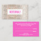 Cute Beauty Salon Referral Faux Silver Sequin Pink Card