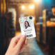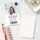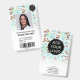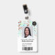 A modern, and professional cute watercolor beavers and flowers pattern pediatrician doctor or nurse photo id badge with logo and barcode.