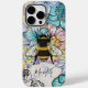 Cuter retro flower and bumble bee design for the person who loves the retro aesthetic. Original watercolour and pencil artwork featuring large florals in vibrant green, blush pink and dusky blue and . Just add your personal monogram to make this item uniquely yours.