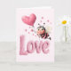 Cute Bee Fluffy Pink Love Heart Balloon Design Card
