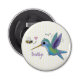 This cute design features a green and purple happy hummingbird with a bee friend. All done in happy cartoon illustration style!