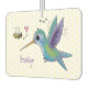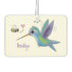 This cute design features a green and purple happy hummingbird with a bee friend. All done in happy cartoon illustration style!