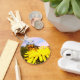 Personalizable text over a natural cute bee on a yellow dandelion.