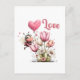 Cute Bee Love Heart & Floral Holiday Postcard