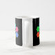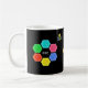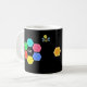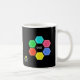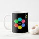Cute bee and multicolored honeycomb on black Coffee Mug.