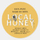 An informal lid label for small beekeepers that prefer an understated label. Bright yellow label with a realistic-looking honey drip on the Y of the words LOCAL HONEY. A cute honeybee flying across the words on the label is sure to bring a few smiles. Great label for honey intended as gifts.