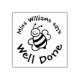 Positive rubber stamp for teachers to use as encouragement and praise for their students. The stamp is decorated with a cute happy and smiling bee illustration. It's personalized with teacher's name and a short phrase meant to encourage and support the good work of a student. Customize it with your own name and favorite positive message.
