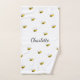 A stylish white background decorated with cute happy smiling bumble bees. Personalise and add a name. The name is written with a modern hand lettered style script