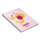 Spiral notebook with a sweet image of a pink and white striped bumble bee. A piece of yellow honeycomb behind. A letter sealed with a heart and a group of floating hearts are also part of the design. Personalise with a name and title.