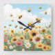 Cute bees and flowers illustration square wall clock