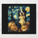 Cute Bernese mountain Dog Halloween Jack O Lantern Pumpkin Face Starry Night Van Gogh Style