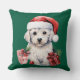 Cute Bichon Frise at Christmas with a Santa hat and gifts