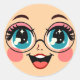 cute big eye cartoon girls glasses Faces art Classic Round Sticker