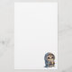 Stationery paper with a kawaii illustration of a big-eyed owl in a winter robe and scarf holding a hot coffee.