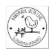 This "Handmade with love" rubber stamp features a cute bird with custom name.