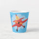 Cute bird flying red aeroplane cartoon illustratio latte mug