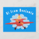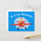 Cute bird flying red aeroplane cartoon illustratio postcard