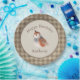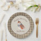Cute brown bird surrounded by a brown weathered plaid personalised birthday plate. So cute for young child’s birthday.