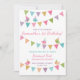 Celebrate your special occasion with this cute and colourful birds on bunting invitation.