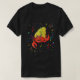 I give wanted to give this a 4 instead of a 5 because these Basic DARK T0shirts run unexpectedly SLIM or Narrow. Which is great if you do not have a potbelly, but I have a paunch. It isn't the shirt's fault that I've got a beer belly. The design and shirt itself is a quality cotton shirt. The color is more of a deep purple, but still a very pretty color. The Basic DARK T-shirts run a bit SLIMMER than the Basic Ts. The neck is a fraction narrower (or seems to be narrower) also. I'm a paunchy middle-aged woman and my neck is 12 inches (31cm) thick and the neckline fell about the same as in the photo of the man, and I had the desire to tug it a bit. So if you're a thick necked man or like loose shirts, be aware these are slimmer shirts. Once I get rid of my lockdown paunch it'll look great. The shirt washed well in cold water with no apparent bleeding. We don't have a dryer, so it hung dry. Did not shrink. Love the colors and the design. The design looks smaller on my shirt than it does on the model on-line. But still, it looks good on the shirt. The printing looks as it does on the model, just the size seems fractionally smaller. Washed garment in cold water, hung dry and design appeared unaffected.