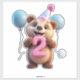 Playful brown bear wearing a striped party hat and blue scarf, surrounded by pink and blue balloons. Ideal for children's birthday themes, party invitations, and festive celebration visuals.