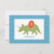Cute Birthday Dinosaur Triceratops Custom Blue Thank You Card