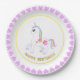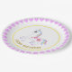 Paper plate framed with cute violet hearts and a cute birthday unicorn at the centre. "Happy Birthday" text can be personalised,
