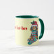 The cute puppy on this customisable christmas mug looking very festive wearing his red santa hat with a sprig of holly in it. The little brown and black puppy dog is holding his red and green stripy Christmas stocking in his mouth as he eagerly awaits a visit from Santa Claus to fill his stocking with lots of gifts and other doggy treats. He looks very special on this original christmas mug. The cute little puppy design really stands out on this cool phone case. You can personalise this christmas puppy mug by adding your own text if you wish to do so. The original puppy illustration is painted in watercolour and goes nicely with the Christmas tabby kitten. I think this unique mug with the cute little water-colour puppy picture makes great Christmas gift for someone special or maybe you just fancy a cute treat for yourself for this Christmas holiday.