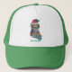 The cute puppy on this customisable christmas hat is looking very festive wearing his red santa hat with a sprig of holly in it. The little brown and black puppy dog is holding his red and green stripy Christmas stocking in his mouth as he eagerly awaits a visit from Santa Claus to fill his stocking with lots of gifts and other doggy treats. He looks very special on this original christmas hat. The cute little puppy design really stands out on this cool hat. You can personalise this christmas hat by adding your own text if you wish to do so. The original puppy illustration is painted in watercolour