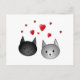 Cute Black and Grey Cats, with Hearts. Postcard