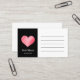 Need to leave a note for a friend, or want to give your mobile number to a new associate? Use this pink and black contact card with a cute pink heart and a place for your name and mobile phone or other contact information. The back is blank for extra writing space. This card can be personalised by choosing the colour that best suits your personality.