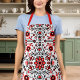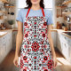 Cute Black And Red Floral Scandinavian Bandanna Apron