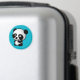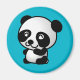 A cute and adorable illustration of a black and white panda bear sitting down and looking happy, friendly and loveable. Turquoise blue background.