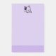 Large format sticky notes designed with an illustration of a smiling and waving kitty cat with a black spot around his ear. Purple background with a polka dot border along the bottom. Simple cute and adorable.