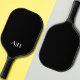 Trendy pickleball paddle features a cute black background,Add your initials or monogram in bold white text for a look that is simple and cute,