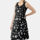 Black and white paw print apron. The black apron is decorated with a pattern made of scattered white paw prints in various sizes. Show your love for pets with this fun apron. It makes a nice gift for a cat mum, dog person, and any other pet lover.