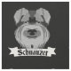 A black and white design of a Schnauzer. This was inspired by a friend of mine who LOVES her cute dog. I can see why, these dogs have wonderful expressive faces with distinctively bearded snouts. There is a black and white banner below the dogs face which reads Schnauzer.