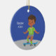 This adorable skateboard ornament is perfect for an active kid who loves to board. Celebrate your child's favourite activity with this personal ornament which features a Black boy on a blue skateboard.