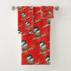 Cute Black-Capped Chickadee with Red Autumn Leaves Bath Towel Set