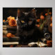 Cute Black Cat and Flowers Poster